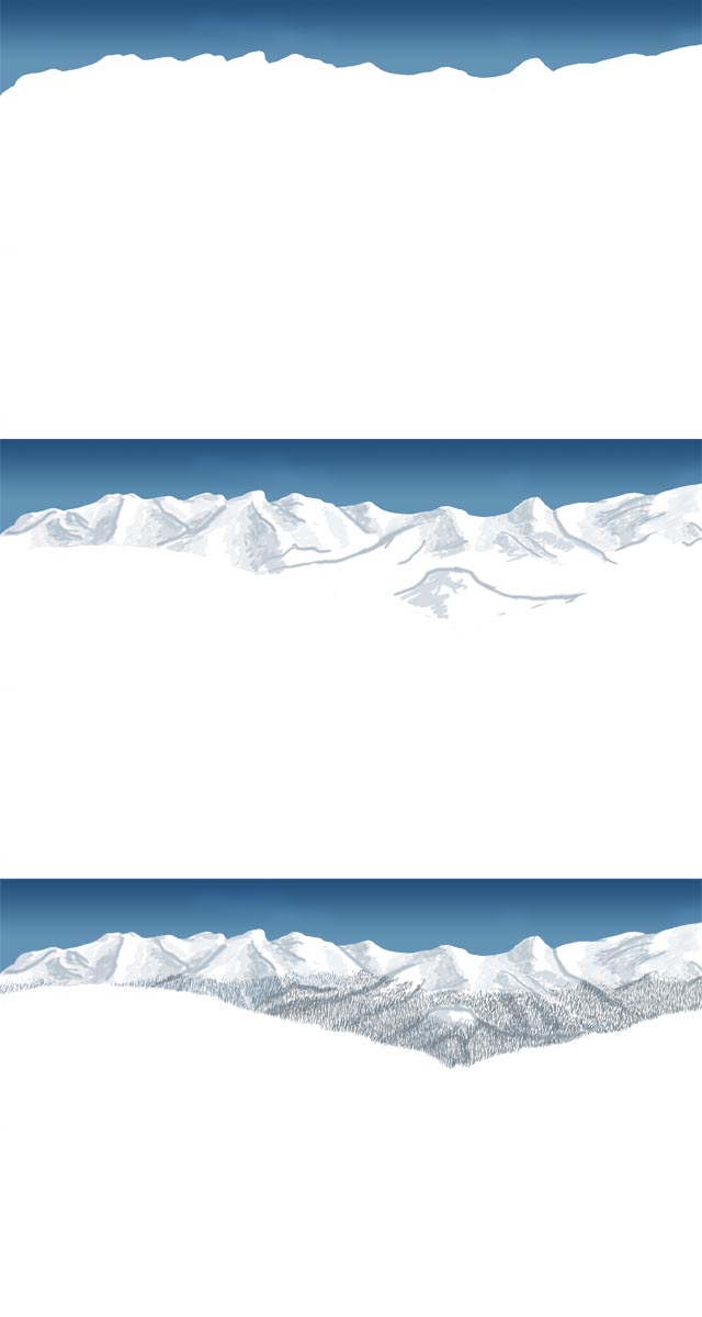 Мастера, можете помочь? Расскажите, как нарисовать горы нормально, чтобы они были правдоподобными и не плоскими. Помогите, пожалуйста...
