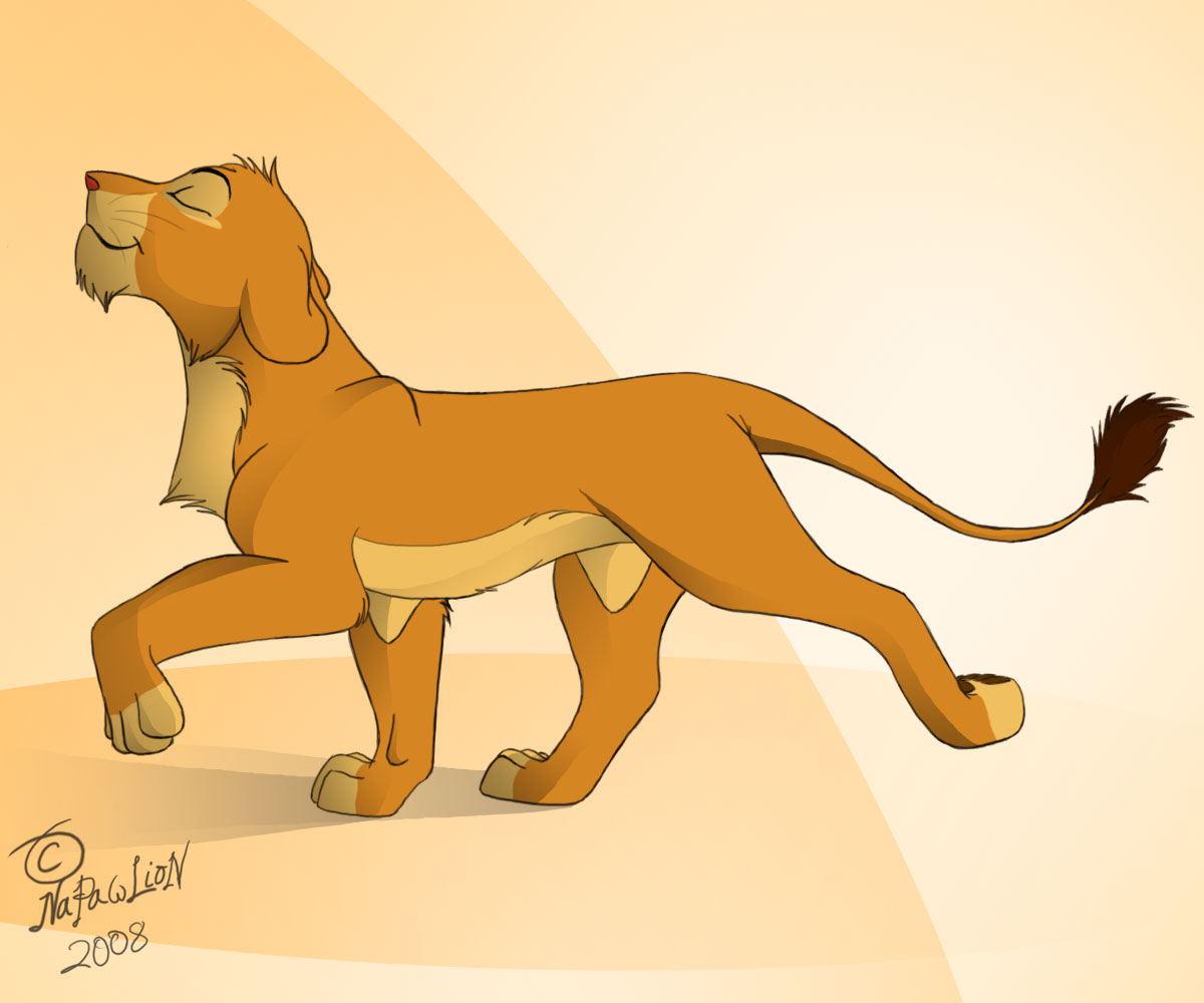 С учетом яркости освещения на льве, логично было бы предположить, что настолько же сильно освещение будет и на остальной местности, включая почву. Настолько косое освещение будет сложновато изобразить, но получиться должно красиво. С другой стороны, можно предположить, что лев освещен лучом. Тогда с бэком будет чуть попроще