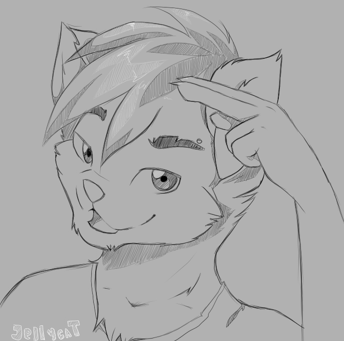 эмм... кот. Антро-кот ) Он как бы говорит "удачи"... Не знаю, он сам нарисовался, пожалуй первый антро рисунок )