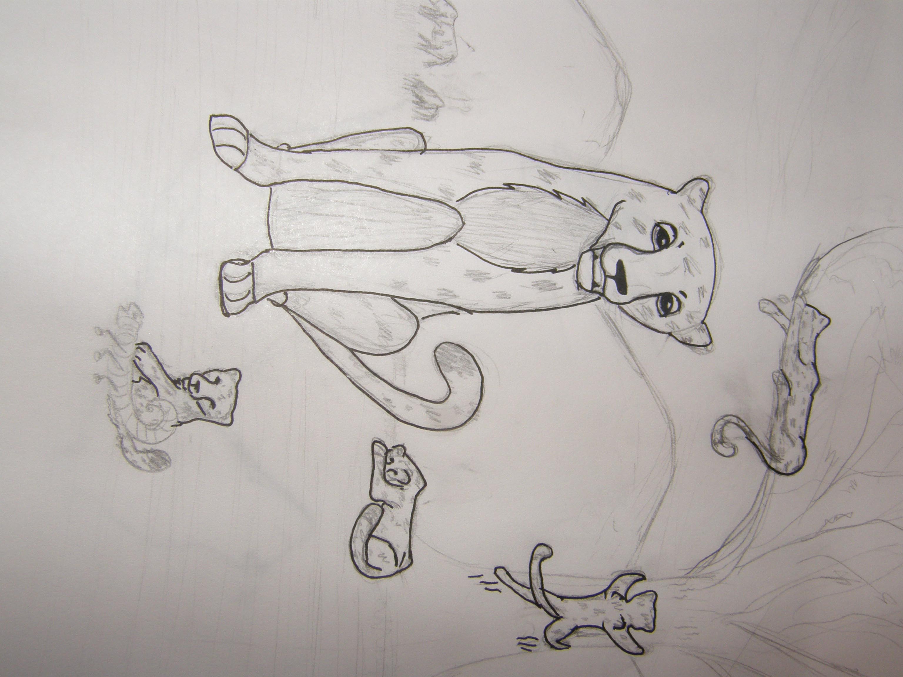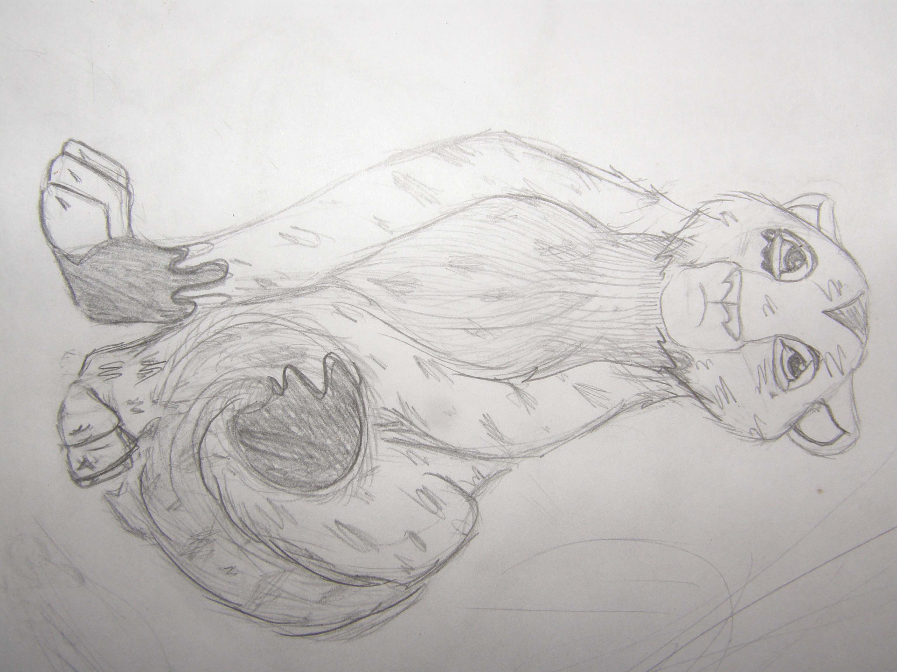 ) Он, наоборот, немного провисает (там же нету мышц, там кожа и шерсть). Бедро великовато и знаменитая ошибка начинающих, подробнее о ней здесь viewtopic.php?f=2&t=197 ещё кое что - при таком развороте пальцев (всмысле, при виде сбоку) не видно третьего пальца (только в некоторых случаях). Насчёт ушей, хвоста и глаз не знаю, возможно, это особенность твоего персонажа.