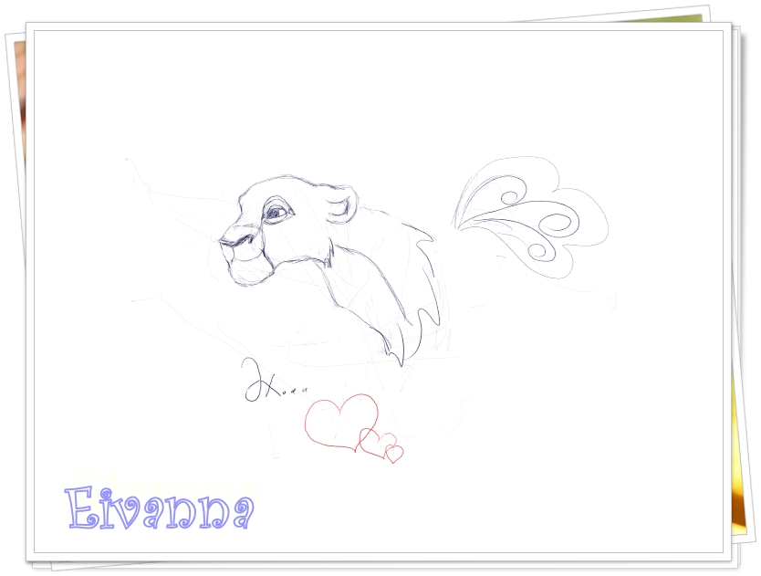 ничего страшного, если я накалякаю ? Синим я обозначила кости, красным - линии. Начнём слева направо. Если это львёнок (судя по лапам), то морда у него слишком длинная и резко опускается вниз (так не должно быть). И узковата немного. Насчёт ошейника - он не может так сильно провисать (аж до лопаток !) и кулон на нём в таком положении животного не был бы виден целиком, а только небольшая его часть прямо непосредственно на линии груди (если, конечно, кулон спереди а не сбоку). А если кулон плоский, то тогда была бы видна одна полоска. Шея коротковата, но на рисунке я не нашла способа её удлинить. Грудь очень большая, должна быть как минимум в два раза меньше. Сверху, между спиной и шеей, должна быть видна лопатка и линия лапы (красным обозначенная). Правая лапа животного (левая от зрителя) должна быть чуть потолще (даже я, наверное, тонкую сделала