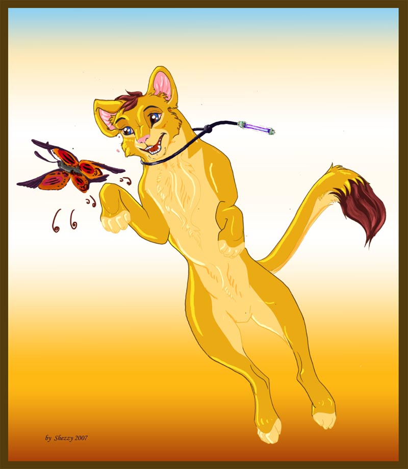 Судя по мордочке у тебя львенок-подросток, но мышцы на задних лапах (на бедрах) большие, как у взрослого льва.