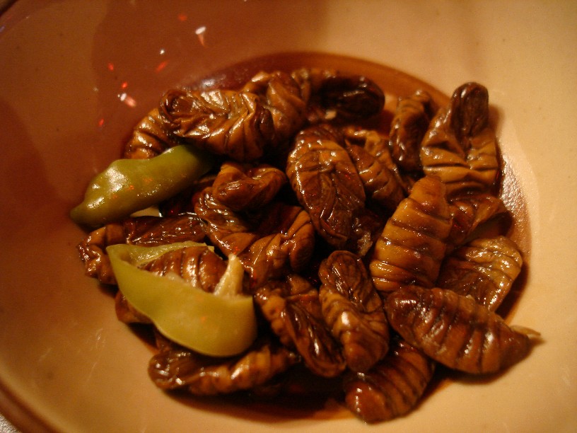 Были в корейском баре, где пили вкусное и дешегое пиво, к которому нам дали на закуску личинок шелкогого червя.