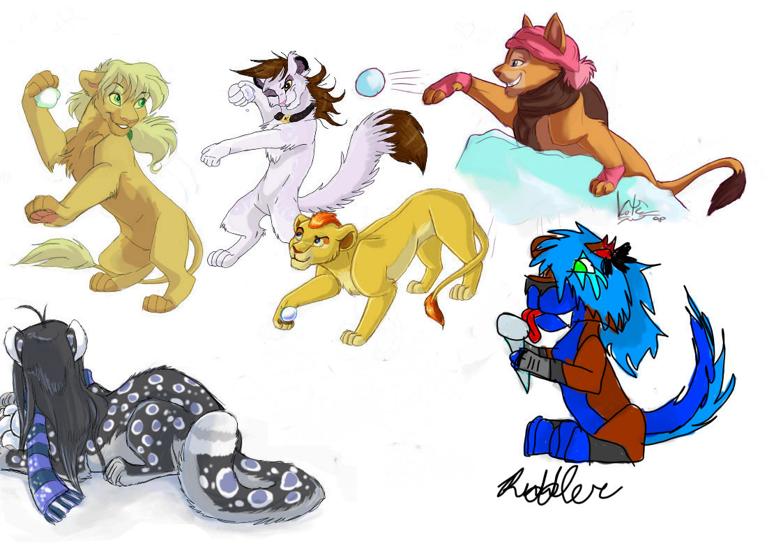 вот такой обалденный коллаб в скетчере мы сегодня замутили - Я, Сирзи, Иманика, Кетти, Маджами и кто-то непонятный жрущий снежок