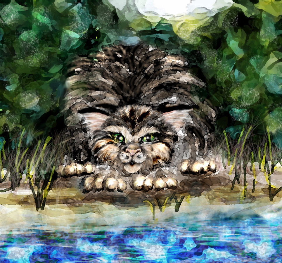На рисунке получился не совсем манул, так форма головы и ушей больше похожи на лесного кота. Ладно, домашнего. "Обычного" такого. из тех пород, что у нас по подвалам выживают