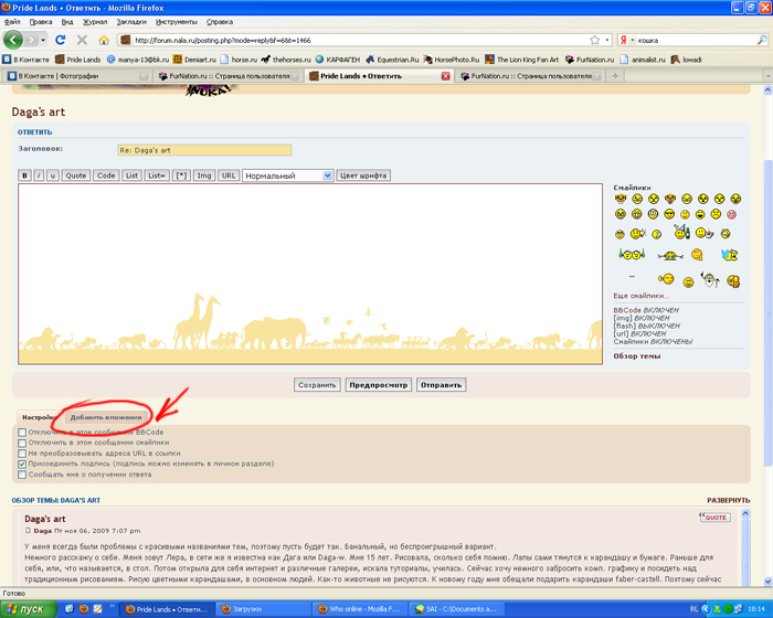 Здесь довольно давно. Хожу, оглядываюсь, учусь, наблюдаю за развитием творчества. А самой как-то... боязно было, наверное. Может быть потому, что у мя в галерее не было львов. Что там львов, вообще кошачьих не было. Или потому, что боялась, как встретите. А зарегистрировалась потому, что мне очень нужно разобрать свои ошибки в рисунках, помочь их как-то решить. Короче, критика мне очень нужна. Можете ругать меня, мой рисунок, но главное объясните что, где и как это можно решить.