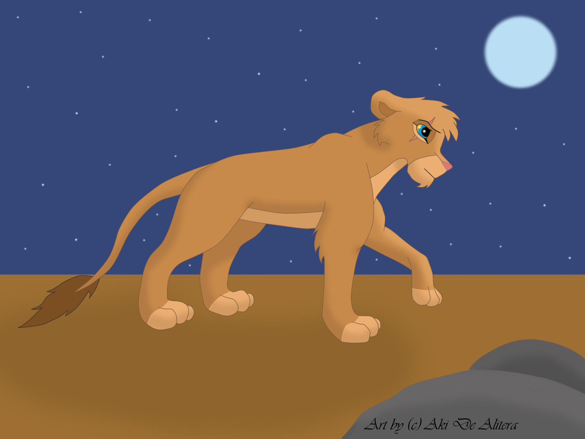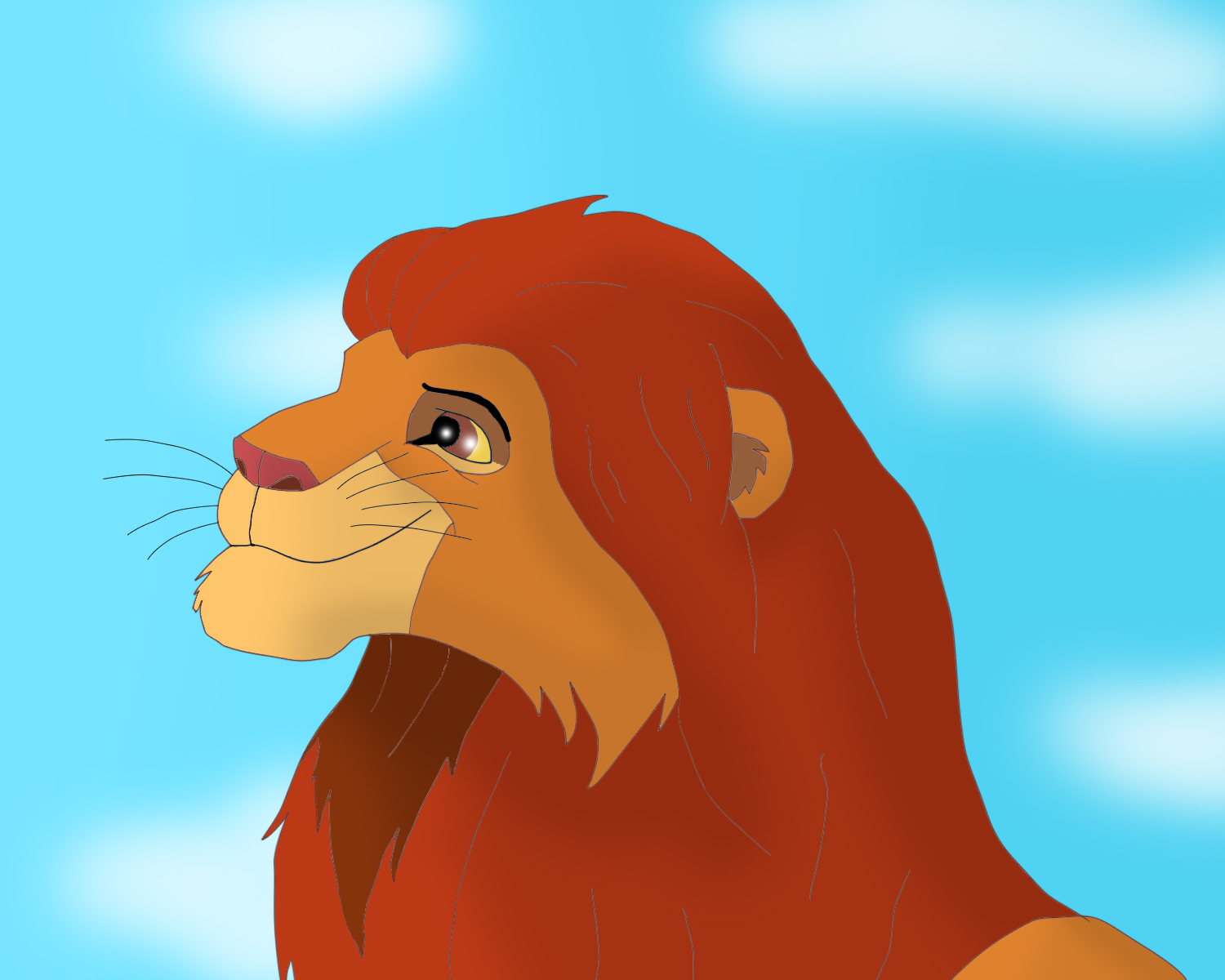 3) Одноцветный фон. Африканский пейзаж или стена пещеры в Скале Прайда создавали бы в рисунке атмосферу TLK. Синий фон, наоборот, создаёт впечатление чего угодно, только не саванны. Советую ознакомиться с туториалом по фону.