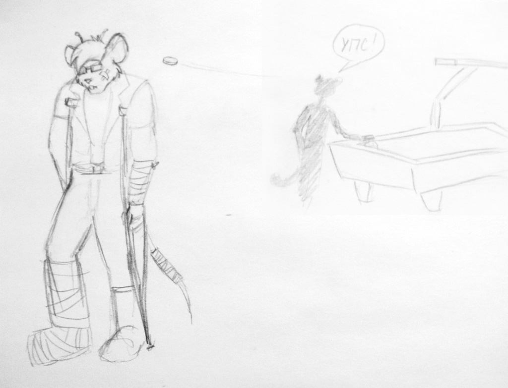 Оказывается, аэрохоккей можно сделать весьма опасной игрой. Играя в него, Алекс умудрился отбить себе пальцы шайбой, ободрать руку и залить биту кровью, попасть шайбой себе в челюсть, отбить коленку и потянуть руку. Затолкал биту в ворота и слегка свернуть верхнюю планку с ворот, когда доставал биту.