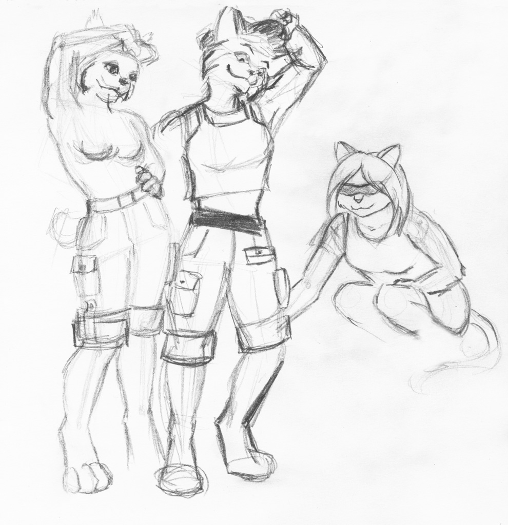 Так делаются наброски для расслабления после проектов — один на другом, без ластика, криво-косо (самое кошмарное замазано напрочь в фотошопе), зато расслабляет :)
