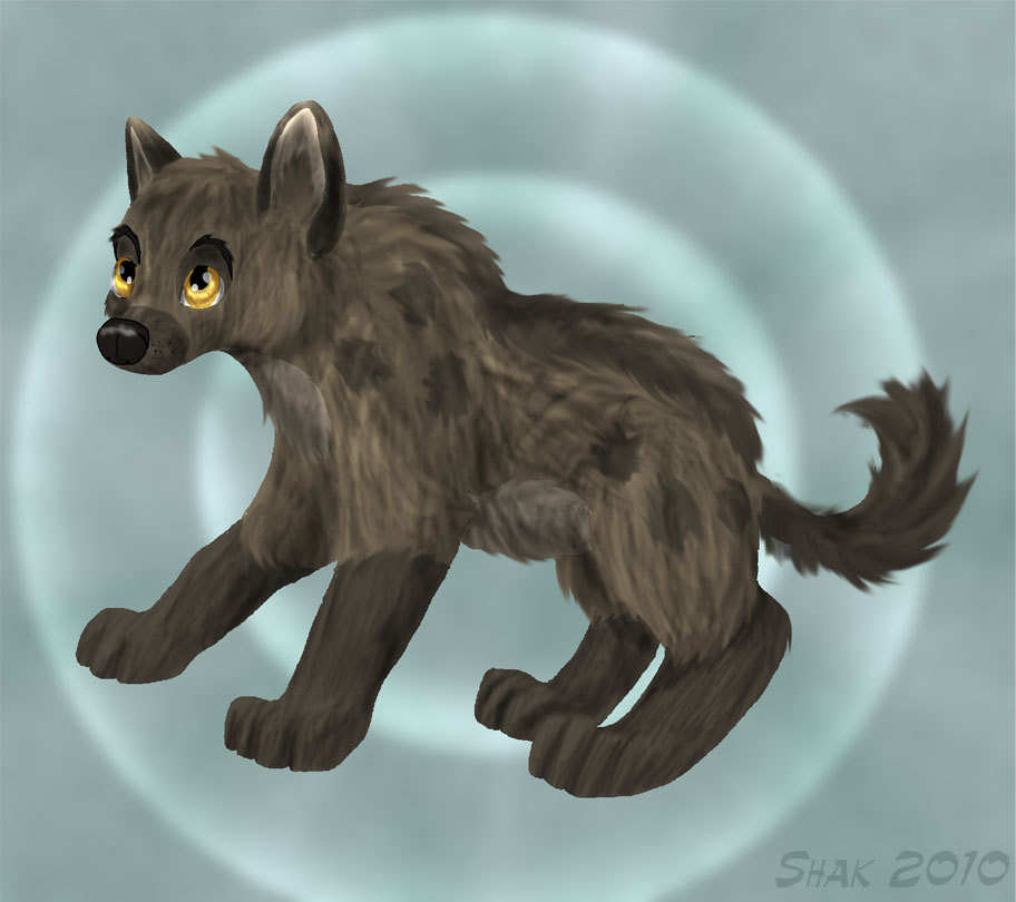 Пуфыстый щенок гиены. Его задние лапы, о Боже мой...