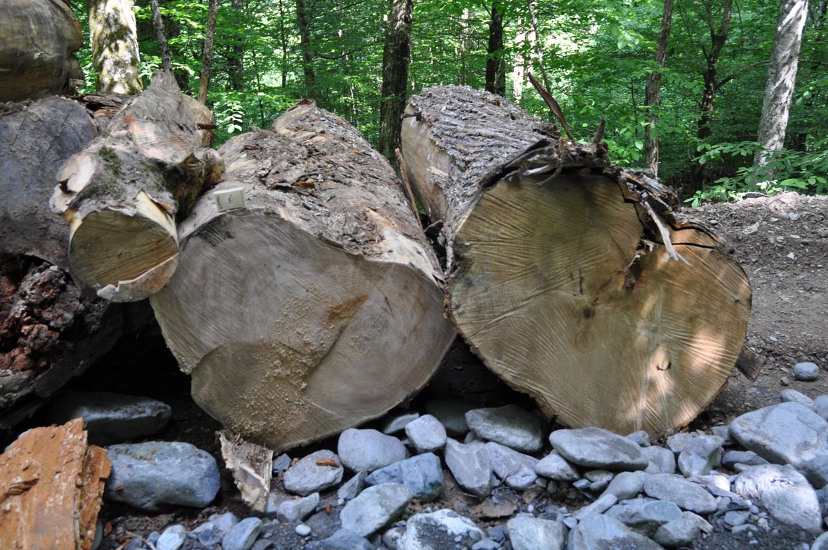 Если верить тому, что каждое кольцо соответствует году жизни дерева, то на этой фотографии им лет 300. Если не верить, думаю, примерно столько же.