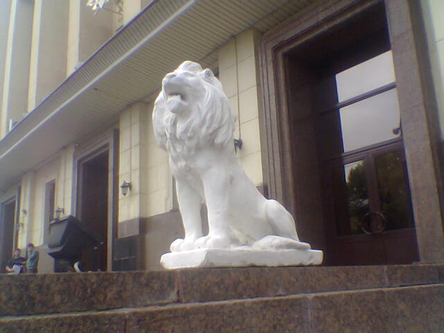 Вот существо, принадлежность которого ко львам я не готов доказать, но что-то там такое есть :-). г. Сухум, Абхазия. Пройдите по центру - найдете без проблем.
