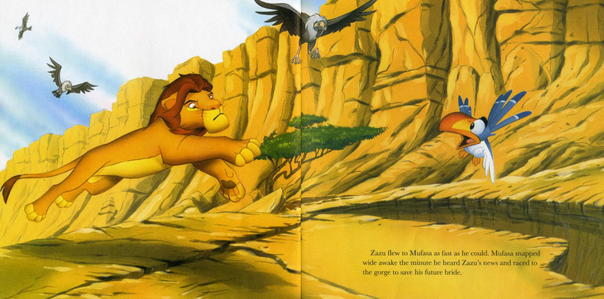 «The Lion King: Friends in Need» — книга, основанная на мультфильме «Король Лев». Она рассказывает о том, как Муфаса встретил Зазу, который спас жизнь Сараби и стал королевским мажордомом.