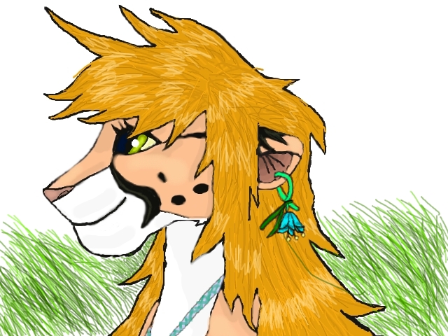 Атро гепардо-львица нравится расцветкой и гривой, худющая только правда... Нужно поучиться рисовать людей, чтобы легче было рисовать анатомию, а еще советую использовать на персонаже ярко выделяющиеся из общей картины цвета. Обычно это считается безвкусицей.