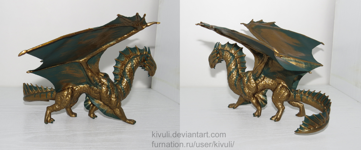 Почти год назад уже выкладывала этого дракона. Сейчас перекрасила его в "натуральный" бронзовый цвет с зеленой патиной
