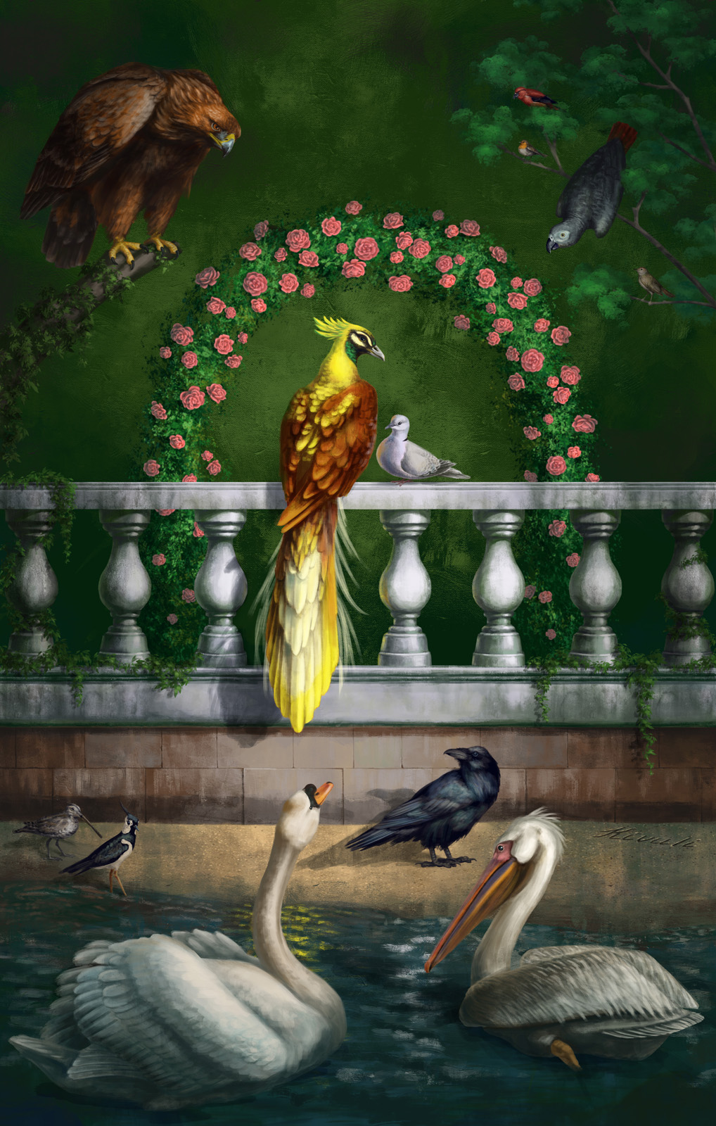 Потрясно! Особенно понравился орел. А детализация перьев! Вы это кисточкой и по мольберту или на планшетнике? Думаю в конкурсе первое место обеспечено, хотя и не совсем уверен, но иллюстрация мне понравилась, представляю книгу в твердом переплете и золотыми буквами на ней Джеффри Чосер, Птичий Парламент, потрясающий рисунок.