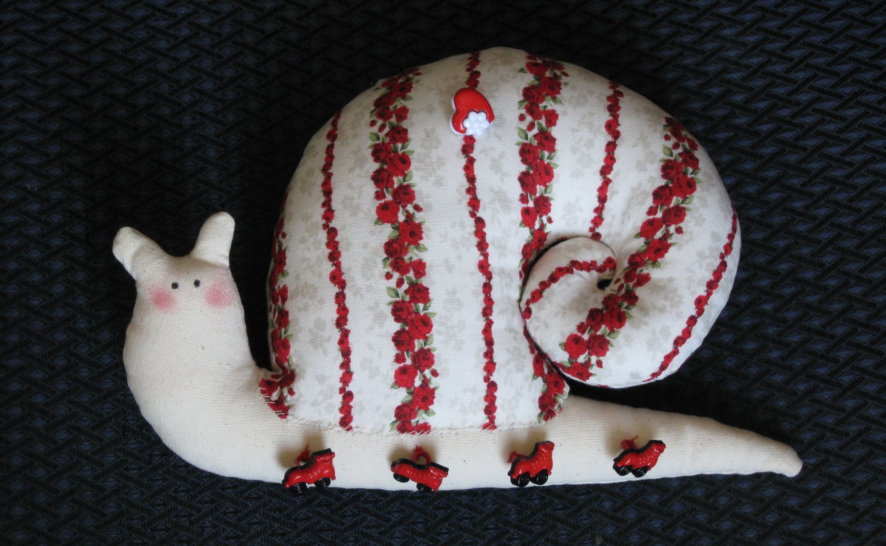 Мне таки удалось отвлечь маму от ручного копирования пиксель-арта и пересадить на более творческое занятие. Теперь она делает русских народных кукол-мотанок, а в последнее время сделала несколько примерно таких улиток: