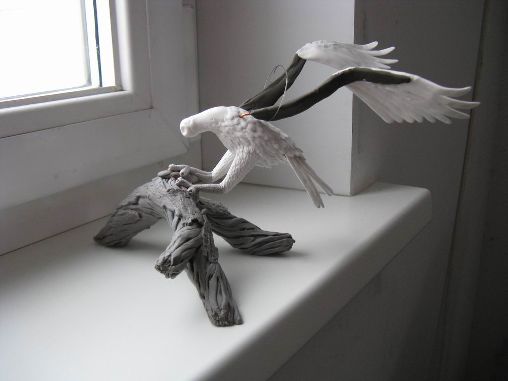 Параллельно леплю фигурку на Нордик, попросили попробовать сделать скопу. Очень навороченный (хотя и красивый) вариант с эпоксидкой делать не стала - не успела бы, решила обойтись только самозастывайкой, которая "бархатный пластик".