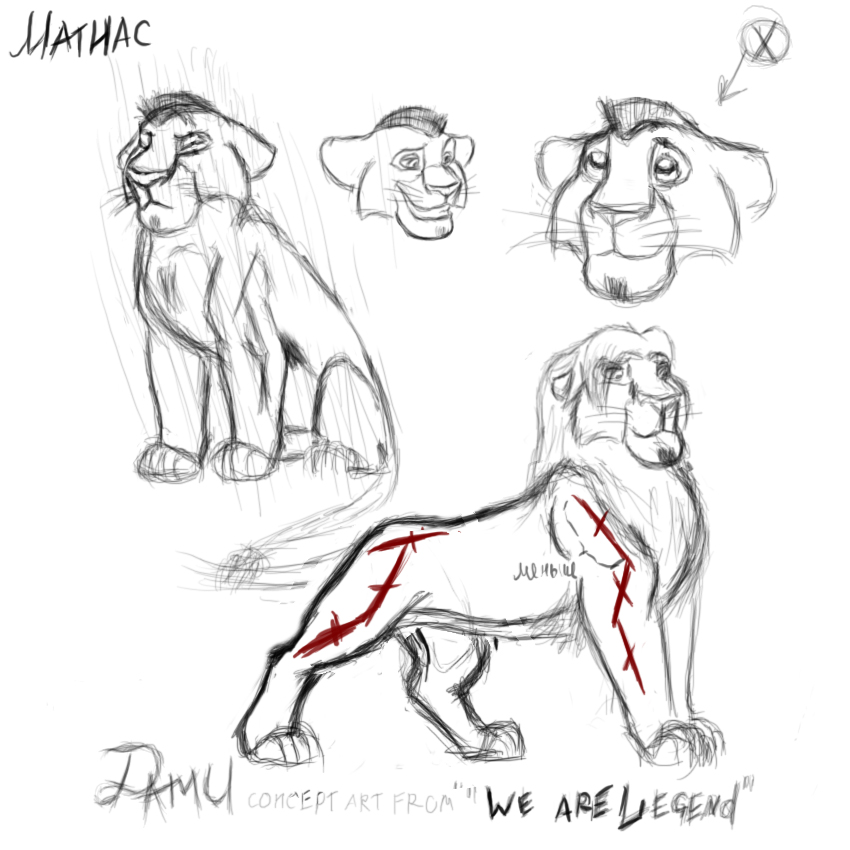 Вот небольшой скетчик персонажа одного))) На счёт ирокеза сразу скажу, это я просто схематично изобразил, так что не обращайте внимания, потом всё равно переделаю. И что то со взрослым львом не так, не подскажите? Лапы короткие или туловище?