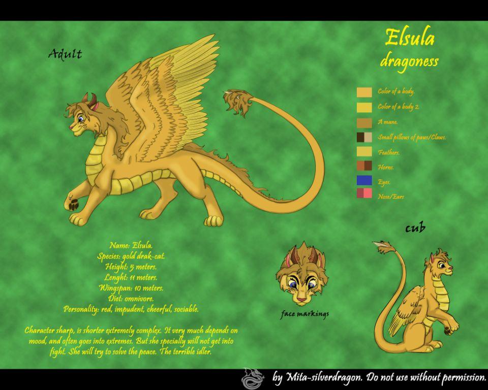 Эльсула - золотистая дра-кошка. В общем она полу лев-полу дракон.