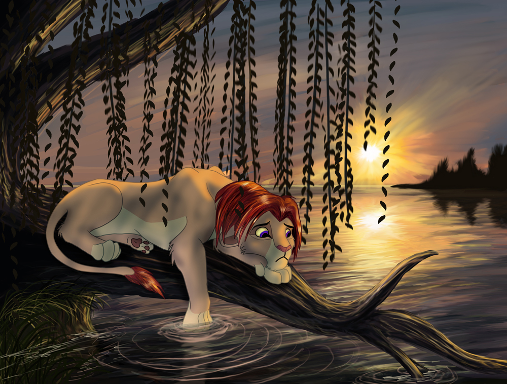 Я для таких рисунков, где много-много-много разных объектов, завел себе правило: когда решил что «все», дать отлежаться ему пару дней и заново на него посмотреть. Всякая мелкая чепуха, так бросающаяся в глаза стороннему наблюдателю (елка в речке (елка и львы это вообще сильно!), две когтистые лапы из 12, трава на хвосте у льва-«сосиски» (длинный он очень, имхо), чересчур размытая зелень на ветке дерева слева), «замыливается», когда рисуешь, и перерыв очень помогает это самому увидеть.