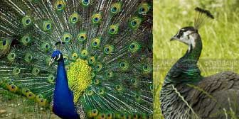 Как в природе - скромная двухцветная девочка и самец всех цветов радуги от голубого носа до сиреневых бровей!