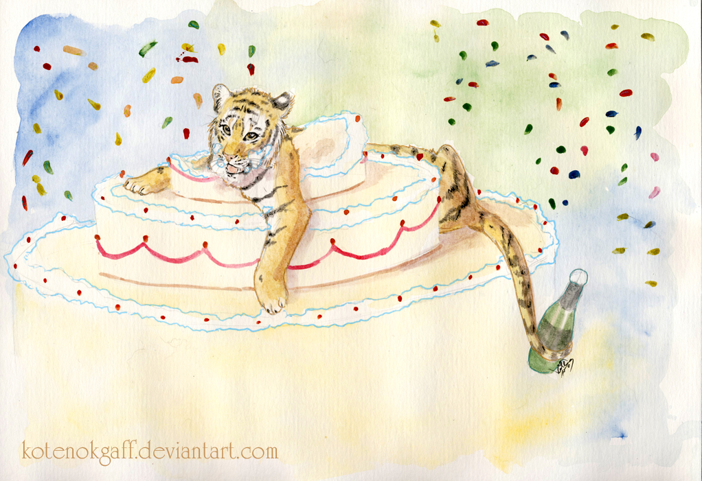 Интересное для меня сочетание фоновых цветов - вижу теплую привязанность, любовь почти и... холодный разум. И торт смещен от центра - тоже интересно.