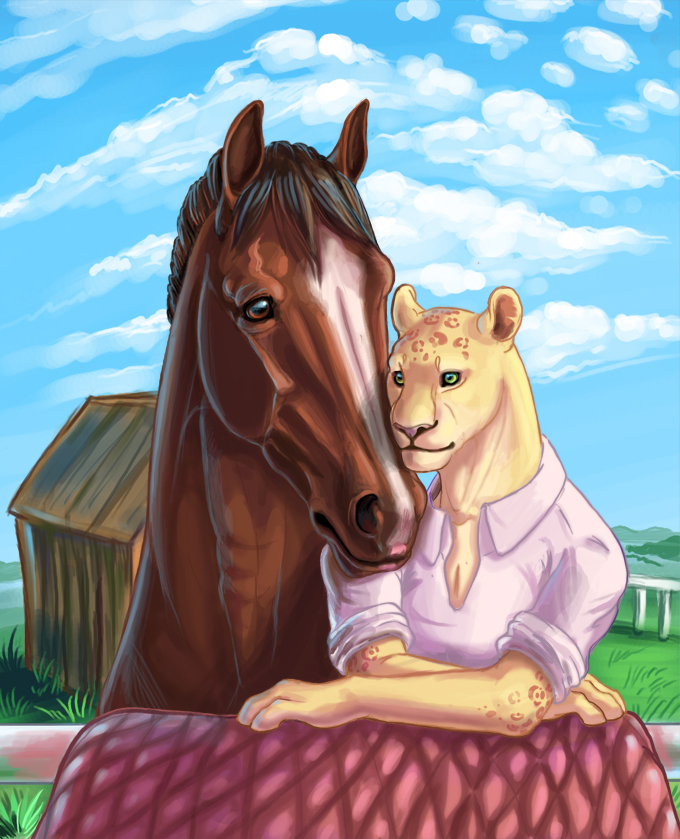 Линия глаз и форма черепа в перспективе - никаких нареканий, респект! Фон очень органично сделан, а стилизация гривы просто великолепная!