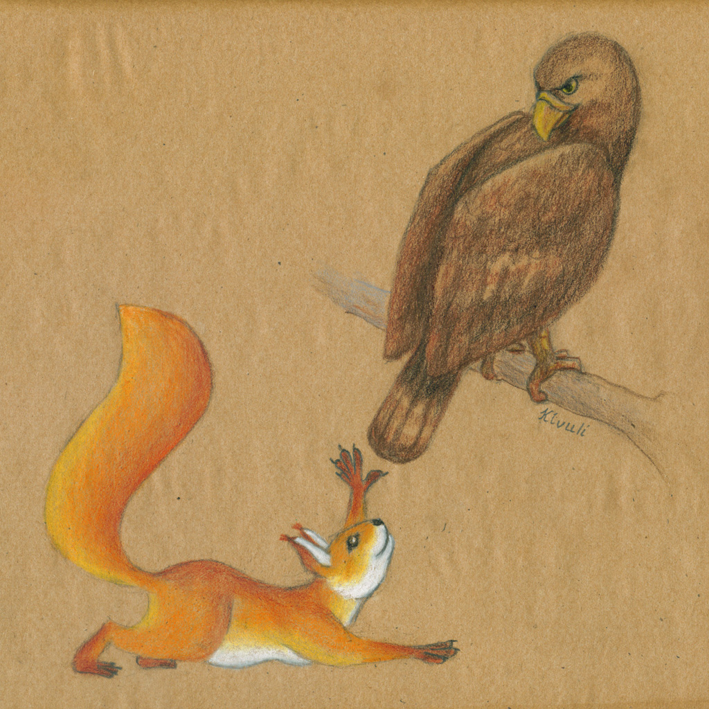 Вдохновлено разговором о добывании белкой перьев хищных птиц.