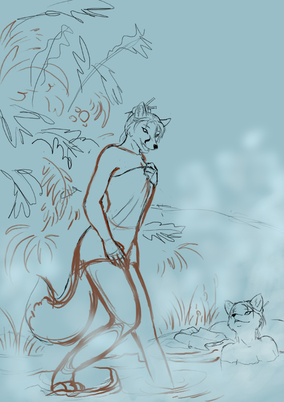 Продолжение работы. Собственно, тоже для корректировки, анатомия, опять же, будет правиться (ну не нравится мне, как ноги сейчас располагаются). Часто мучать WIP'ами не буду — сейчас главое утвердить идею и композицию, а дальше уже справлюсь