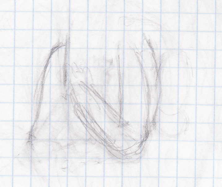 Фрагмент зарисовки очередной идеи. Тоже никуда не годится. Две недели ни практики, ни референса, в перспективе третья. Качество скана такое, что смотреть надо под трёхкратным уменьшением. Депортация из д/о не удалась - забыл дома паспорт.
