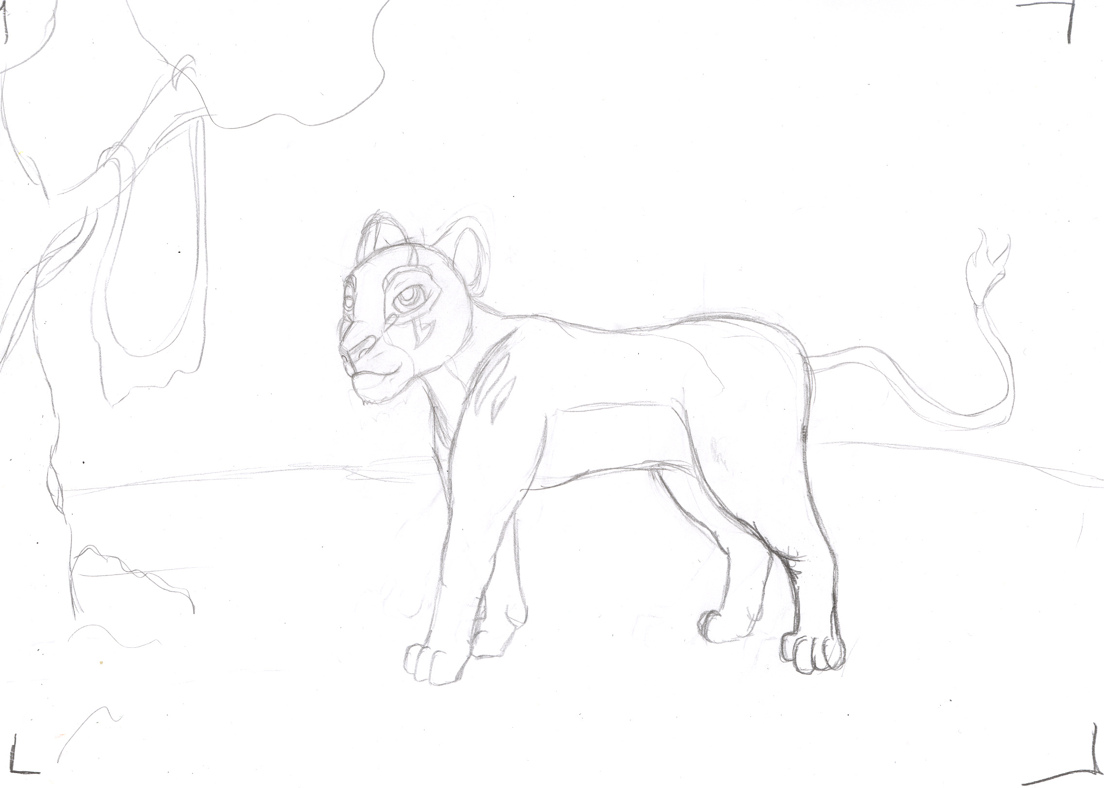 Так, небо мне нравистя, окрас львицы тоже, земля нравится, не трава, а именно земля. По поводу травы: слишком зеленая, ее бы чуть потемнее, будет реалистичнее смотреться. И анатомия львицы хромает. Во превых, самая такая ошибка, это то, что ты 3 пальца на лапах рисуешь! У кошек по 4-ре пальца надо рисовать, а на передних по 5-ть, четыре основных на которые они наступают когда ходят, и пятый маленький такой, ну ты знаешь
