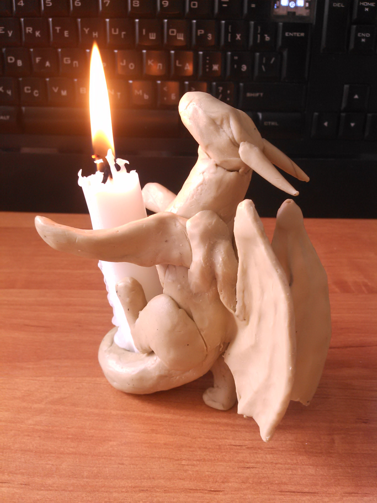 У меня очередной проект... Задачей было сделать подсвечник в виде дракончика, не имеющий никаких видимых поддерживающих элементов. Только дракончик и свеча.