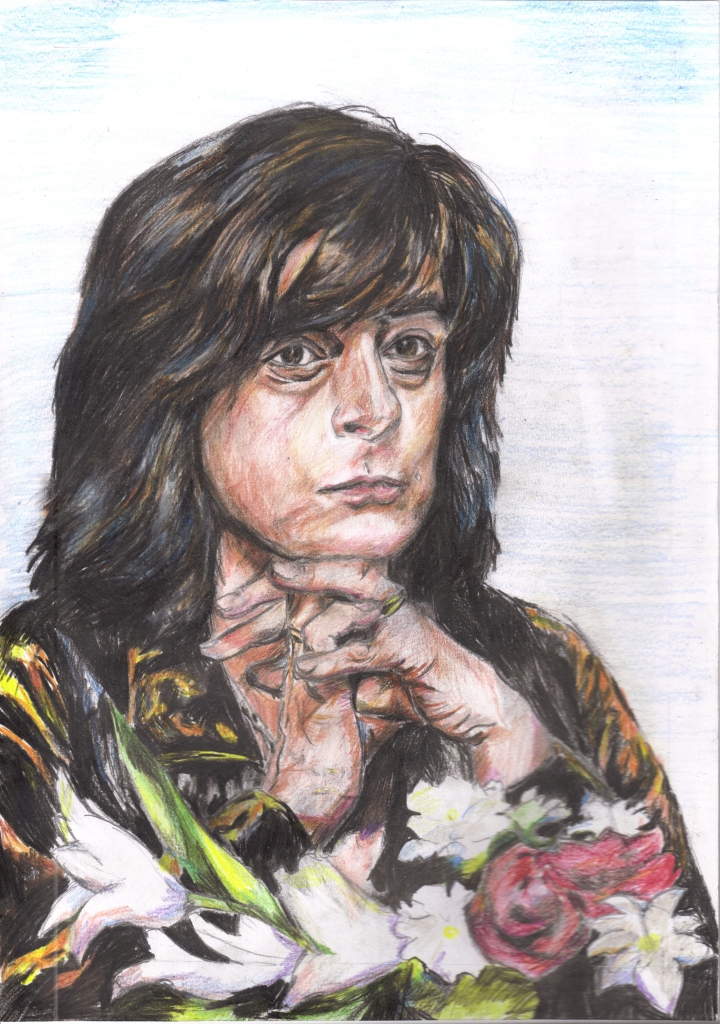 Возникло спонтанное желание вернуться, но вот беда, Короля-льва я перестала рисовать. Попросту я испугалась. Сдалась, еще не начав ничего делать. Год вообще не рисовала, так по мелочи если. А еще год назад вдохновилась музыкой, а точнее одним старым рок-вокалистом. Не знаю, почему тогда не спасовала как всегда, но я стала опять рисовать потихоньку, мало-мало, глупо-глупо. Просто, чтобы выплеснуть чувства, которые пробуждает музыка.