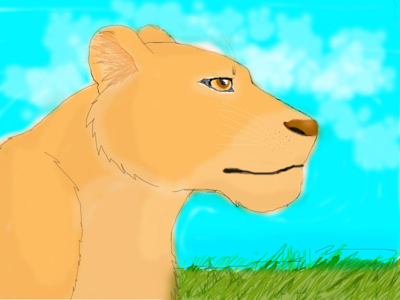 Не очень нравится форма шеи, лопатки и грудины. Сверься с фоткой. Конечно, положение львицы там другое, но несколько неточностей в рисунке видно сразу. Это в частности касается и формы черепа. Например, опять же: У львицы на фотке явно видно, что затылок у неё кончается дальше ушей. Нос должен иметь свою собственную плоскость и место на морде. у тебя же получилось так, как будто носа там изначально не было, а потом на бугорке нарисовали пятно. То есть он не объёмен. К тому же его линия должна быть наклонена в другую сторону.