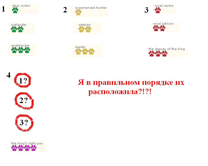 Про шрифт поняла...А про ранги я знаю они там настраиваются...но как картинку поставить там как у тебя лапки разных цветов...только другую..и кого во размера она должна быть?